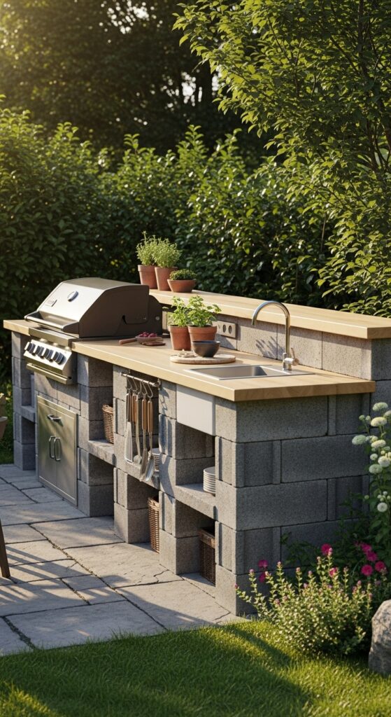Top them with a butcher-block slab or a weatherproof board, and boom—you’ve got a solid outdoor station.