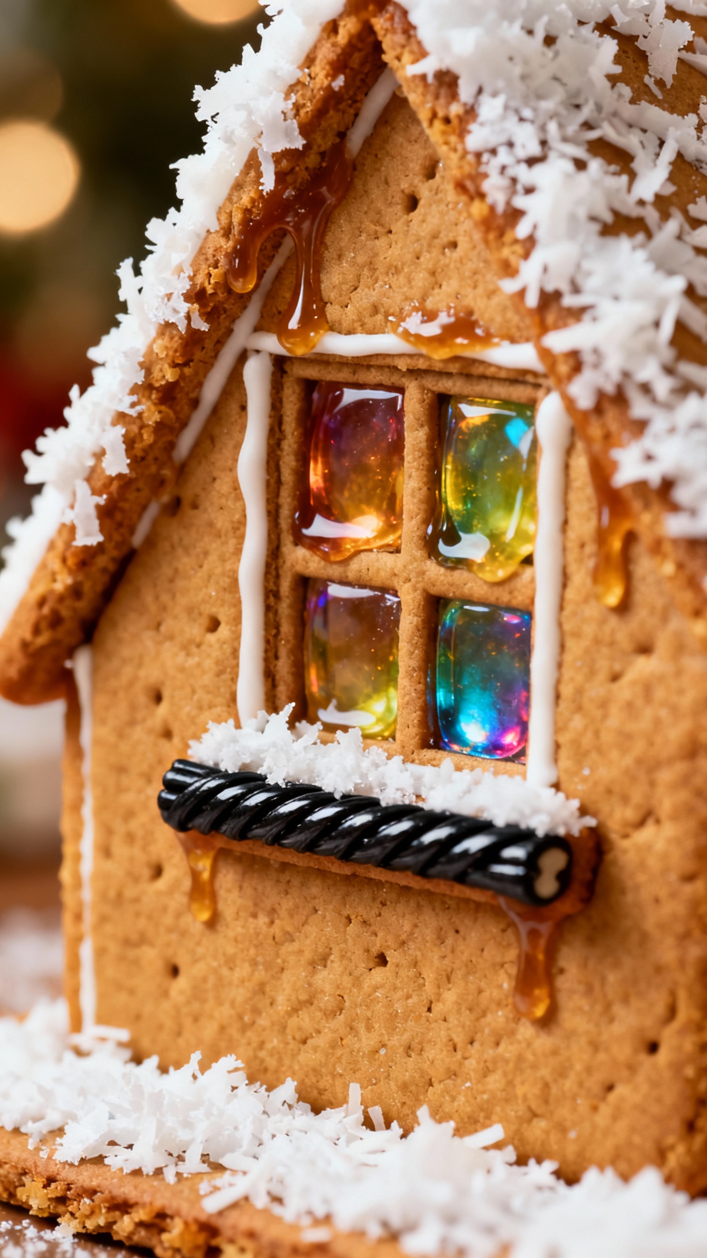 • Windows: Melted candy glass (crushed hard candies baked in cutouts) for a warm glow.