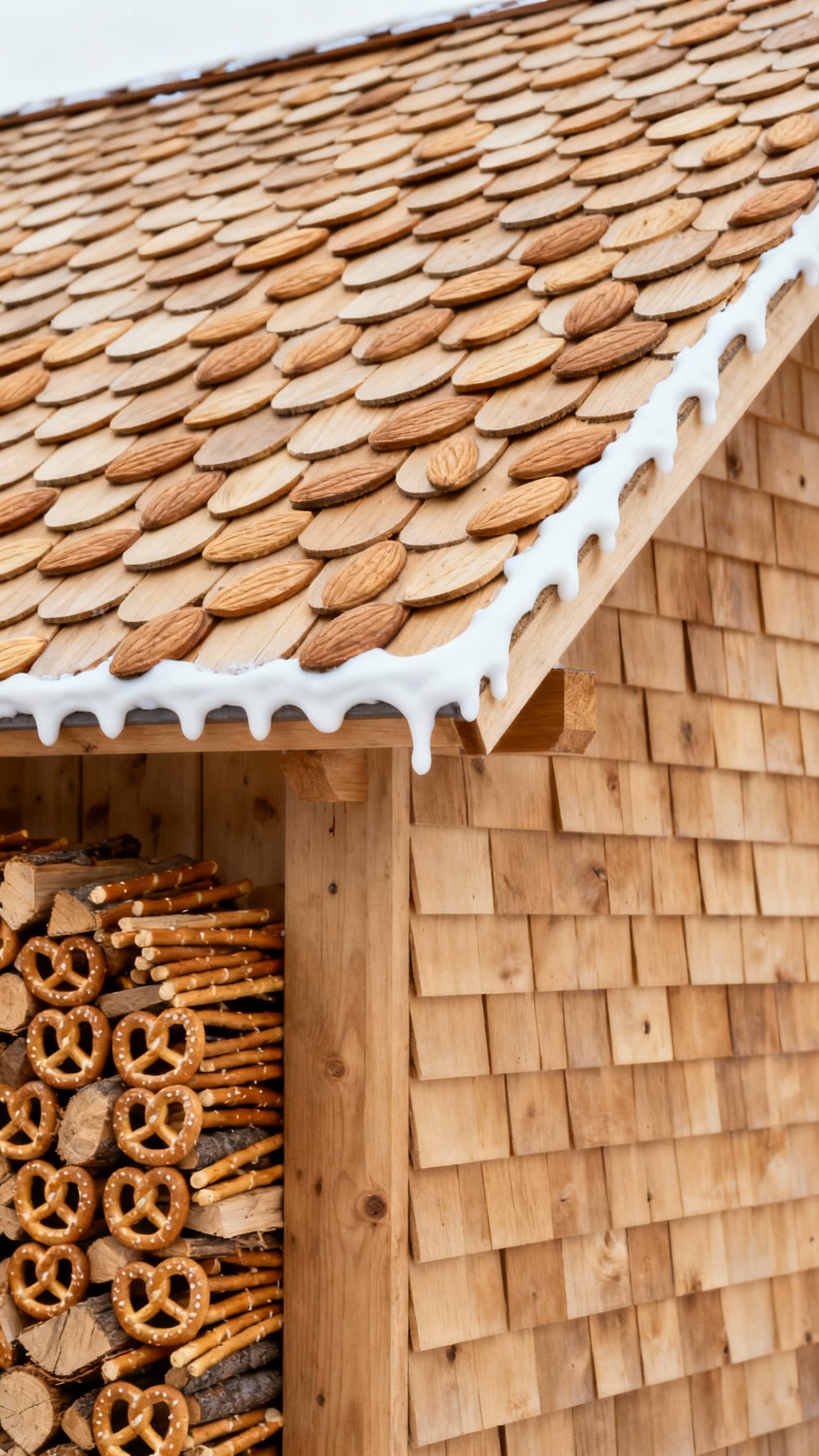 • Accents: Pretzel-stick firewood stacks, wafer “concrete” steps, and thin icing outlines.
