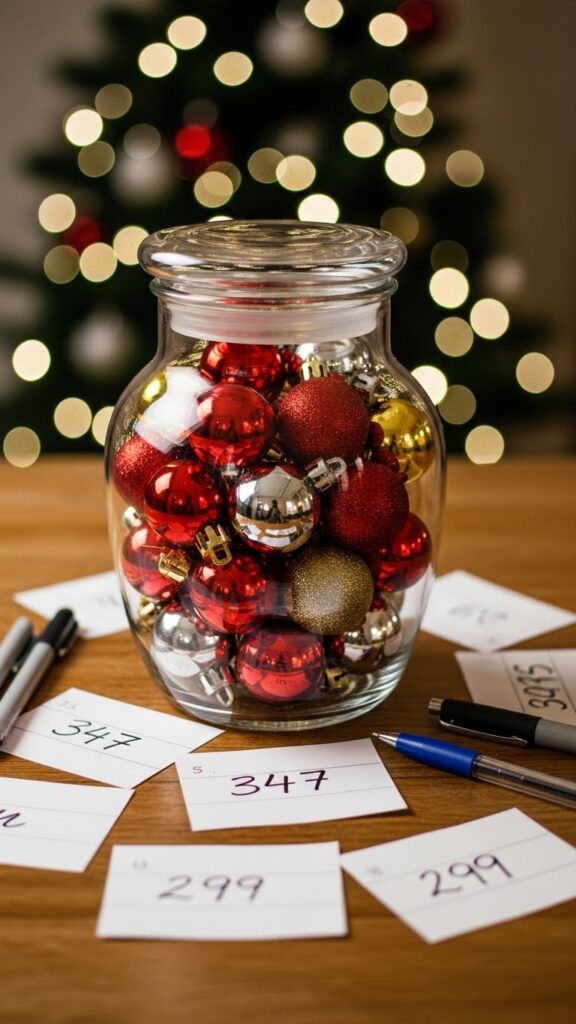 2. Have each participant write down their guess of how many ornaments are in the jar.