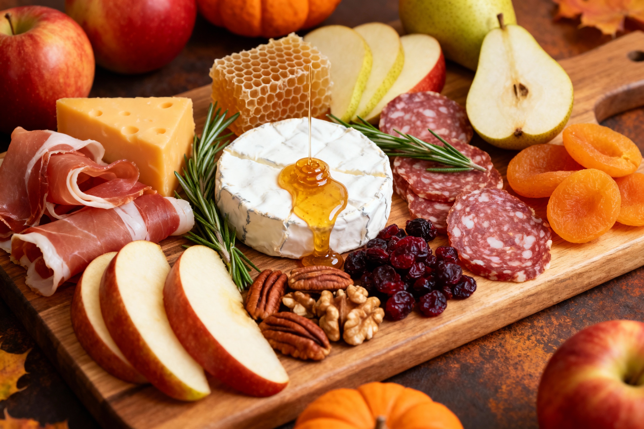 • Seasonal produce: Figs, pears, apples, red grapes, pomegranate arils, persimmon slices—basically anything that looks like it fell off a still life painting.