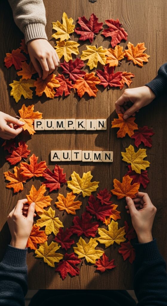 Before game night, write single letters on fake leaves. Hide them around your house or yard. When the game starts, teams race to collect leaves and spell fall-themed words. Whoever spells the most words in ten minutes wins.