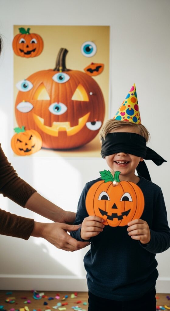 This game’s perfect for younger kids but somehow adults get just as into it. Competitive dad energy peaks during Pin the Face on the Pumpkin—I’ve seen it firsthand.