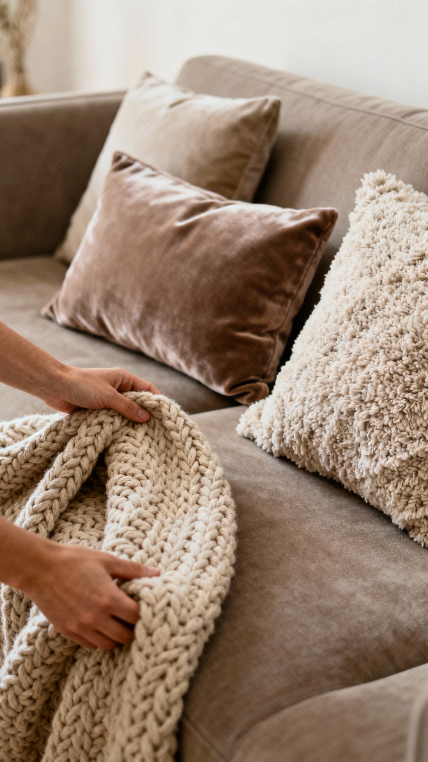 Texture reads cozy without screaming for attention. Think chunky knits, nubby wovens, soft velvets. Your eyes relax because they don’t need to decode anything.