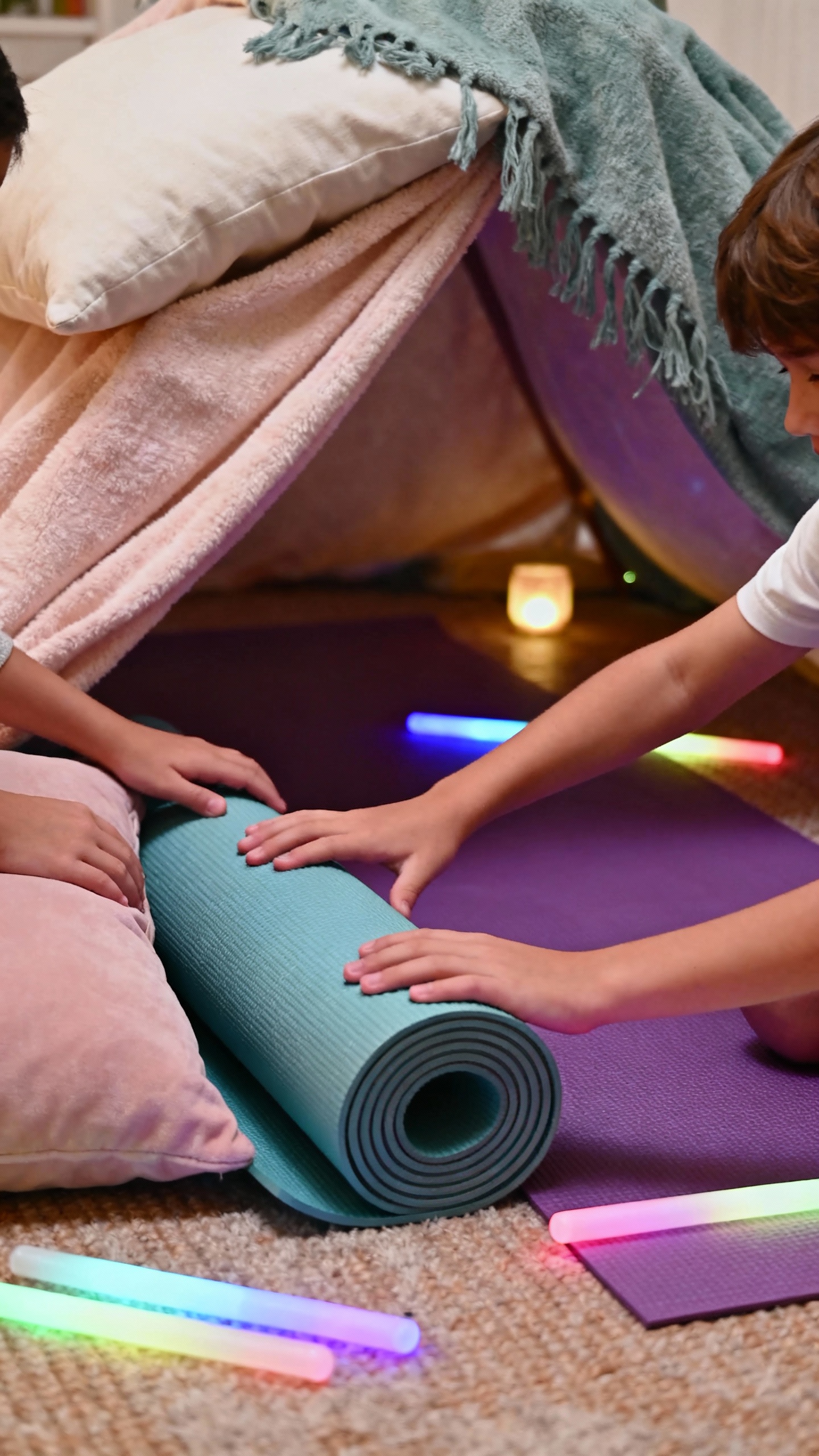 • Layer the floor: Yoga mats + blankets + pillows. Comfort without breaking the bank.