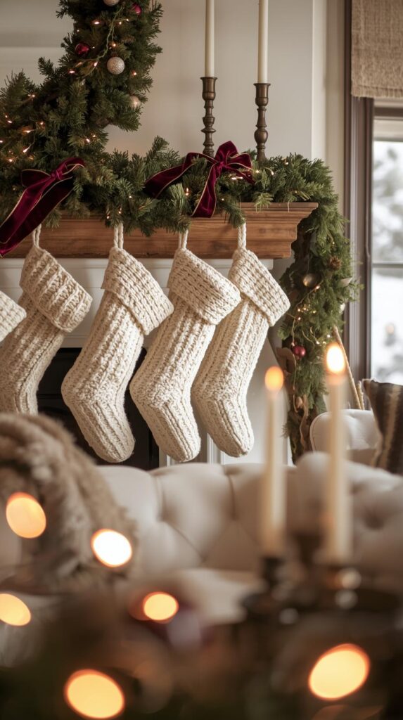 This palette shift is HUGE, IMO. The creamy tones make everything feel so much warmer and more inviting. I swapped out my bright white stockings for ivory ones this year, and the difference in how cozy my mantel looks is actually incredible.