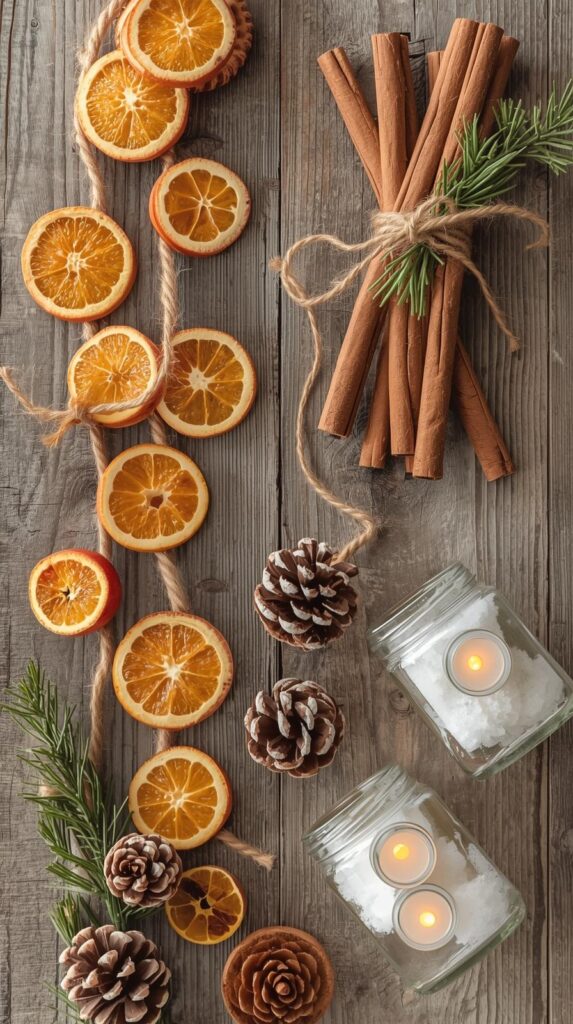Dried Orange Garland: Slice oranges thin, bake at 200°F for 3-4 hours (flipping halfway), then string them up with twine. Boom. Done. Costs like $5, looks expensive, smells amazing.